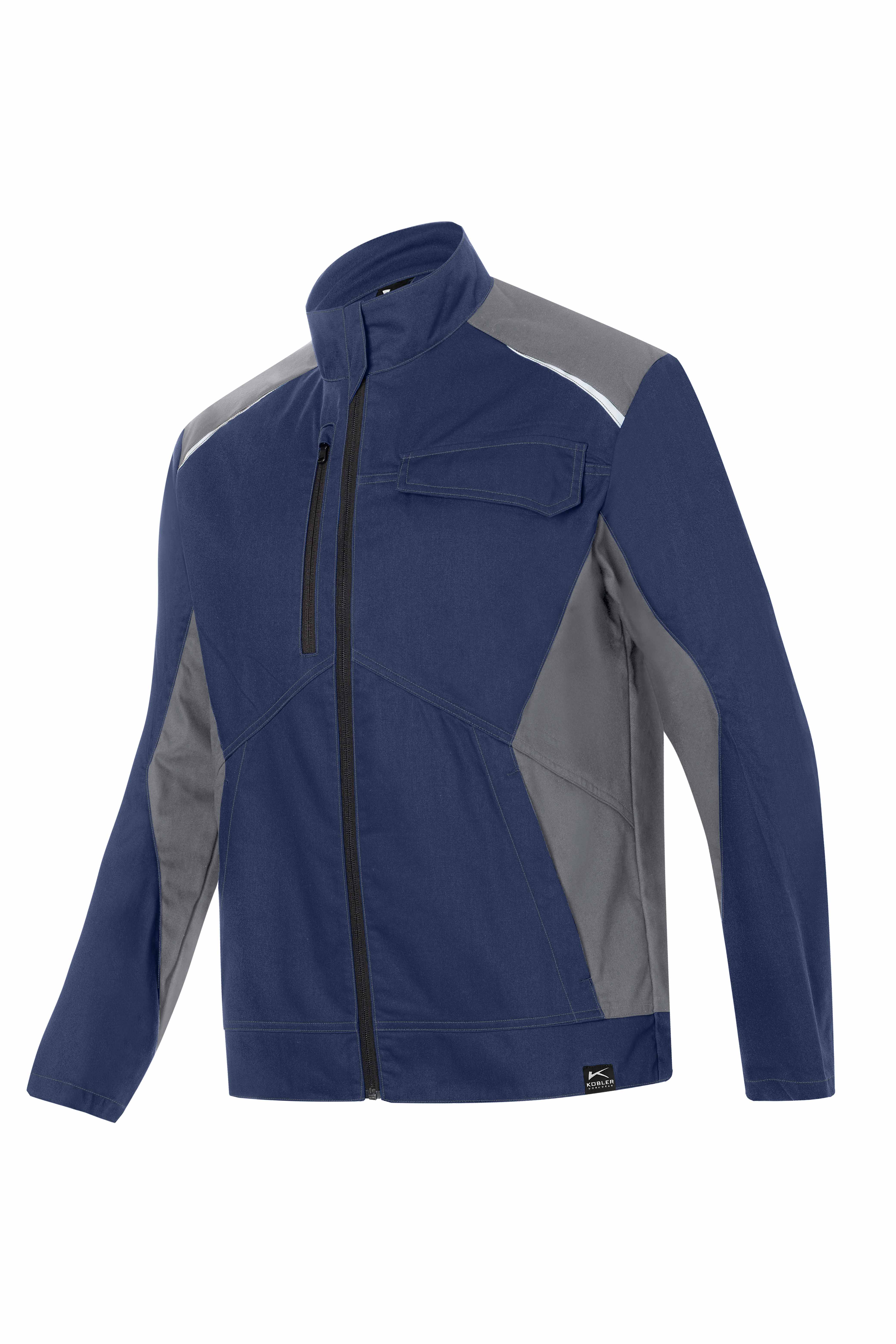Frontreißverschluss mit nach innen gedrehter Spirale und Zippergarage sowie kombiniertem Bart- und Kinnschoner