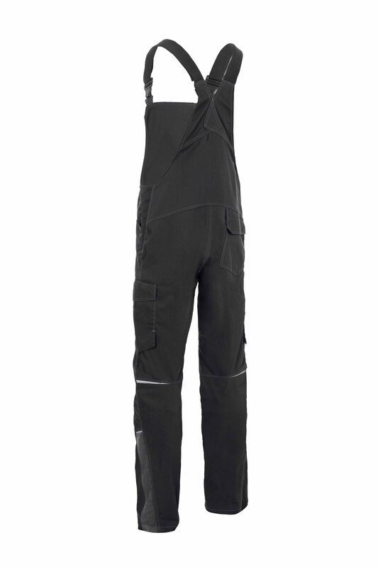 Kontrast-Elemente: Seiteneinsätze am unteren Hosenbein, Stifttasche neben Latztasche