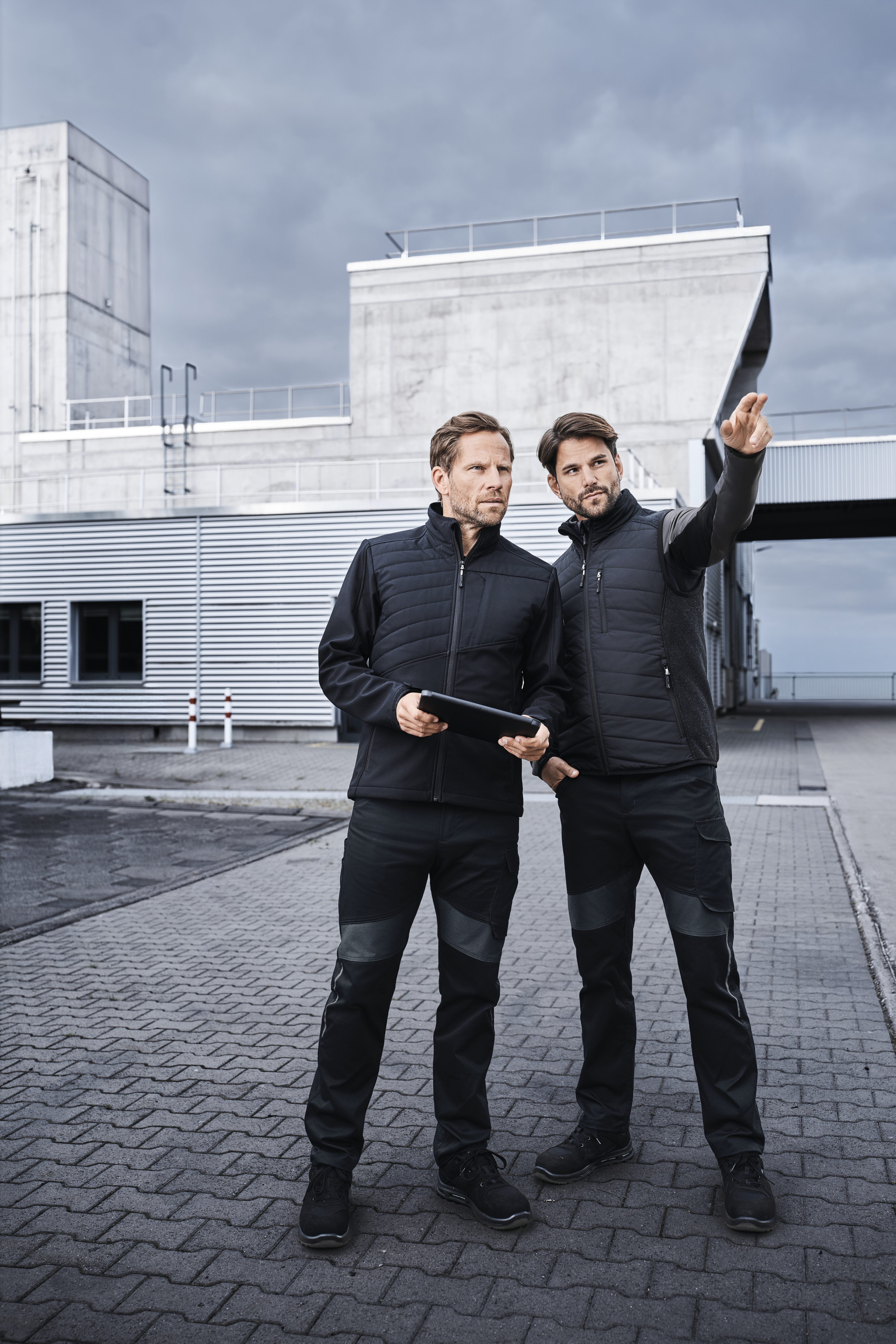 Innovative Gewebestruktur mit einer Kombination aus glatter Steppoptik und strukturiertem Softshell-Gewebe
