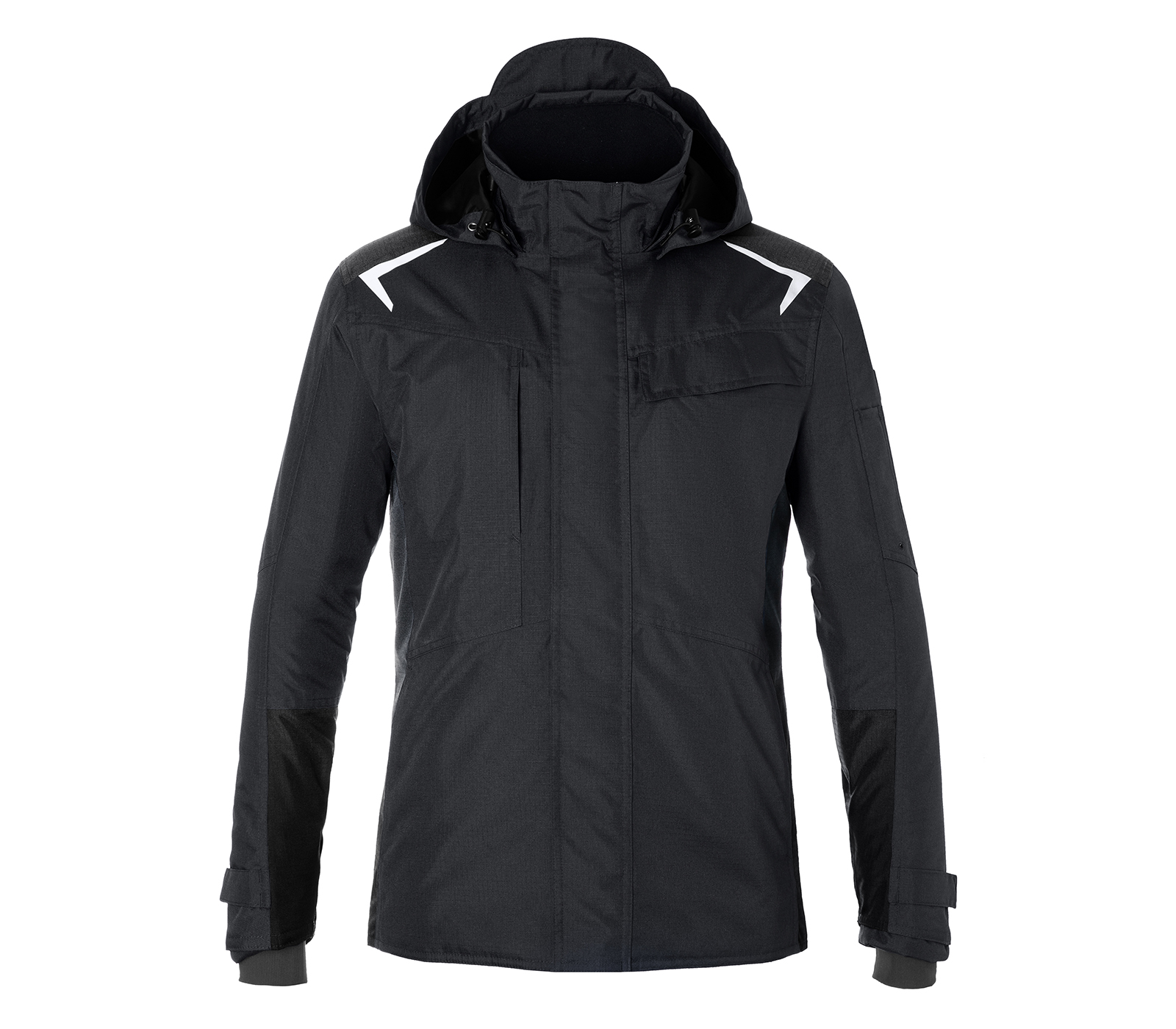 2-Wege-Frontreißverschluss mit Kinnschutz, doppelter Blende, innen mit Regenrinne und verdeckten Druckknöpfen